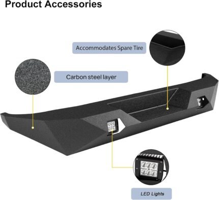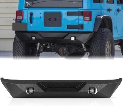 Rear Bumper Fits For Jeep Wrangler JK JKU Unlimited 2007-2018, Steel Bumper Off Road Heavy Duty Full Width Rear Bumper W/LED Lights, Foot Pedal Upgraded Textured Rock Crawler
