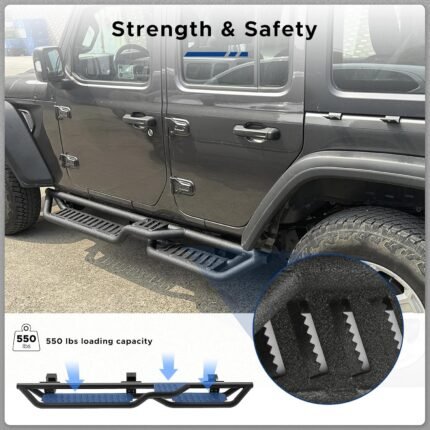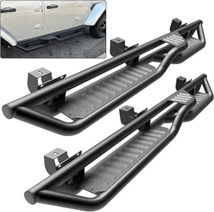 Running Boards for Jeep Wrangler JK 4 Doors 2007-2018, Double Stairs 5 Inches Width Heavy-Duty Steel Off Road Rock Sliders Rocker Guards Side Steps Anti-Slip Textured Black