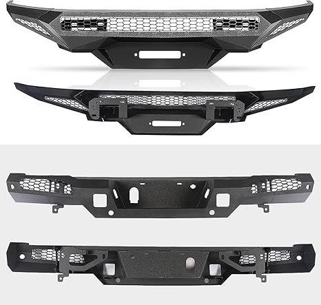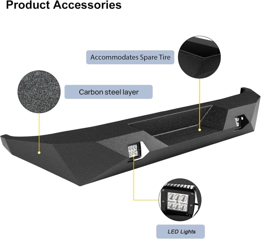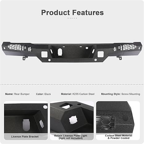 - Solid Construction: Heavy Duty Rear Bumper with Heavy-duty Carbon hard steel sheet. Steel Bumper Set is also powder-coated with black textured finish and enhanced by pre-treatment to provide resistance against rust and wear