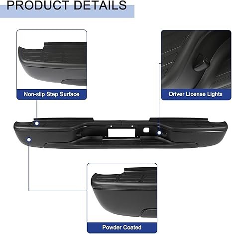 | Vehicle Fitment Note | Rear Bumper Assembly compatible with Chevy Silverado GMC Sierra 2500HD 3500 1999-2007. (For Heavy Duty 07 Classic Model). WITHOUT parking aid sensor holes.Rear Bumper Assembly compatible with Chevy Silverado GMC Sierra 2500HD 3500 1999-2007. (For Heavy Duty 07 Classic Model). WITHOUT parking aid sensor holes. |