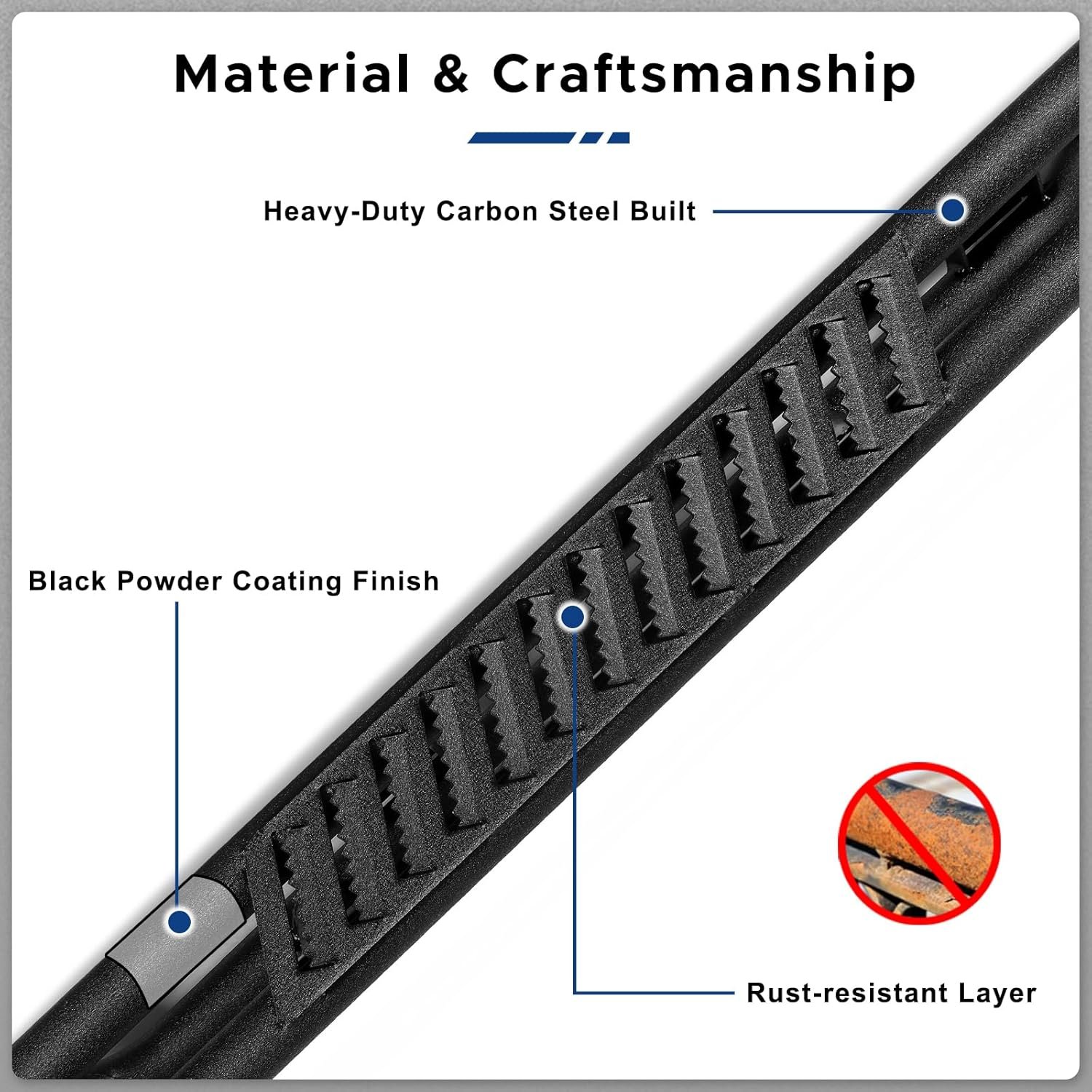 - DURABILITY AND STRENGTH- Reinforced heavy-duty carbon steel construction side steps offer more than 550 LBS load capacity on each side and can handle the weight of multiple passengers entering and exiting the vehicle and gear. Offer a safe experience for you and your passengers while entering and exiting the vehicle