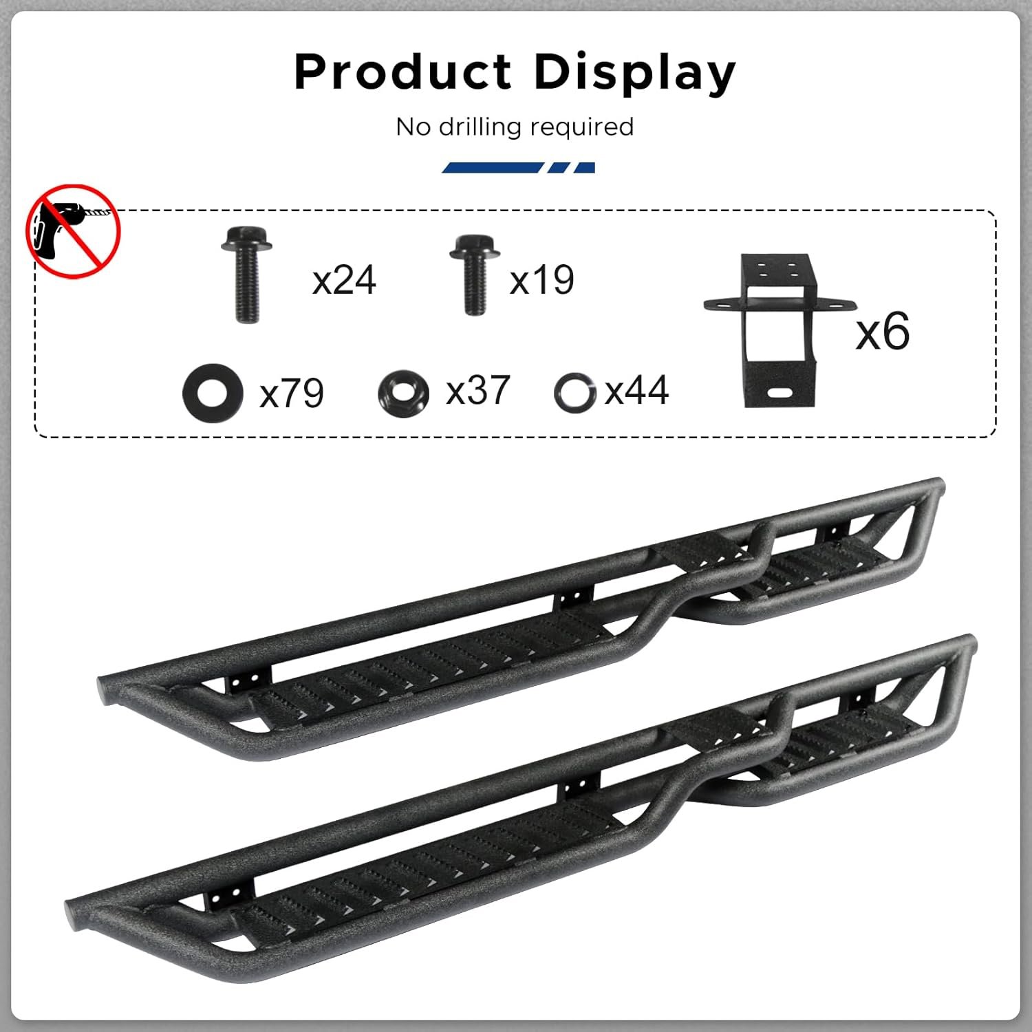 - CORROSION RESISTANCE- Textured black powder coat prevents corrosion. Anti-Slip patterns provides extra traction for stepping into the vehicle. Safe even in mud, snow and wet weather