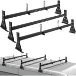Van Ladder Racks, Van Roof Rack Steel 3 Bars for Ford Econoline E150 250 350 1992-2015, fit for Chevrolet Express 1500 2500 3500 Topper Racks 750 lbs Capacity (Black)